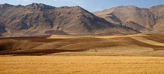 Bis Urmia, einer Stadt im äußersten Nordwesten Irans, fahren wir durch eine Landschaft mit abgeernteten Getreidefeldern und sanft geschwungenen braun beigen Hügeln, durch die sich die Strasse in sanften Kurve und Kuppen windet.