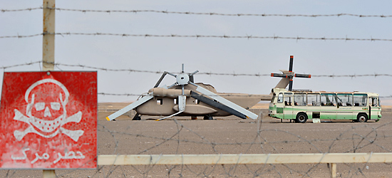 Die Wracks und ein von den Amerikanern angehaltener Linienbus stehen noch heute wie ein Mahnmal im Wüstensand.