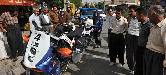 Kurz nach Kermanshah beginnen das kurdische Gebiet auf iranischem Boden. An einem Militärkontrollposten müssen wir anhalten und wir werden peinlich genau über den Grund unserer Reise und die weiteren Ziele befragt. Ein Offizier verschwindet eine halbe Ewigkeit mit unseren Pässen in einem kleine Bruchsteingebäude. Als ich einen jungen Soldaten frage, ob es Probleme gibt, wird mir in gebrochenen Englisch mit einem nervösen Blick zu den Kurden nur geantwortet: "There ist fire, Terrorist´s!" Letztendlich können wir doch weiterfahren, doch anfangs beobachten wir unser Umfeld sehr genau. Auf Grund der Situation im nahen Irak und dem türkisch-kurdischen Konflikt scheinen auch die Iraner in äußerster hab acht Stellung zu sein um ein Überschwappen der Feindseligkeiten zu vermeiden.